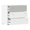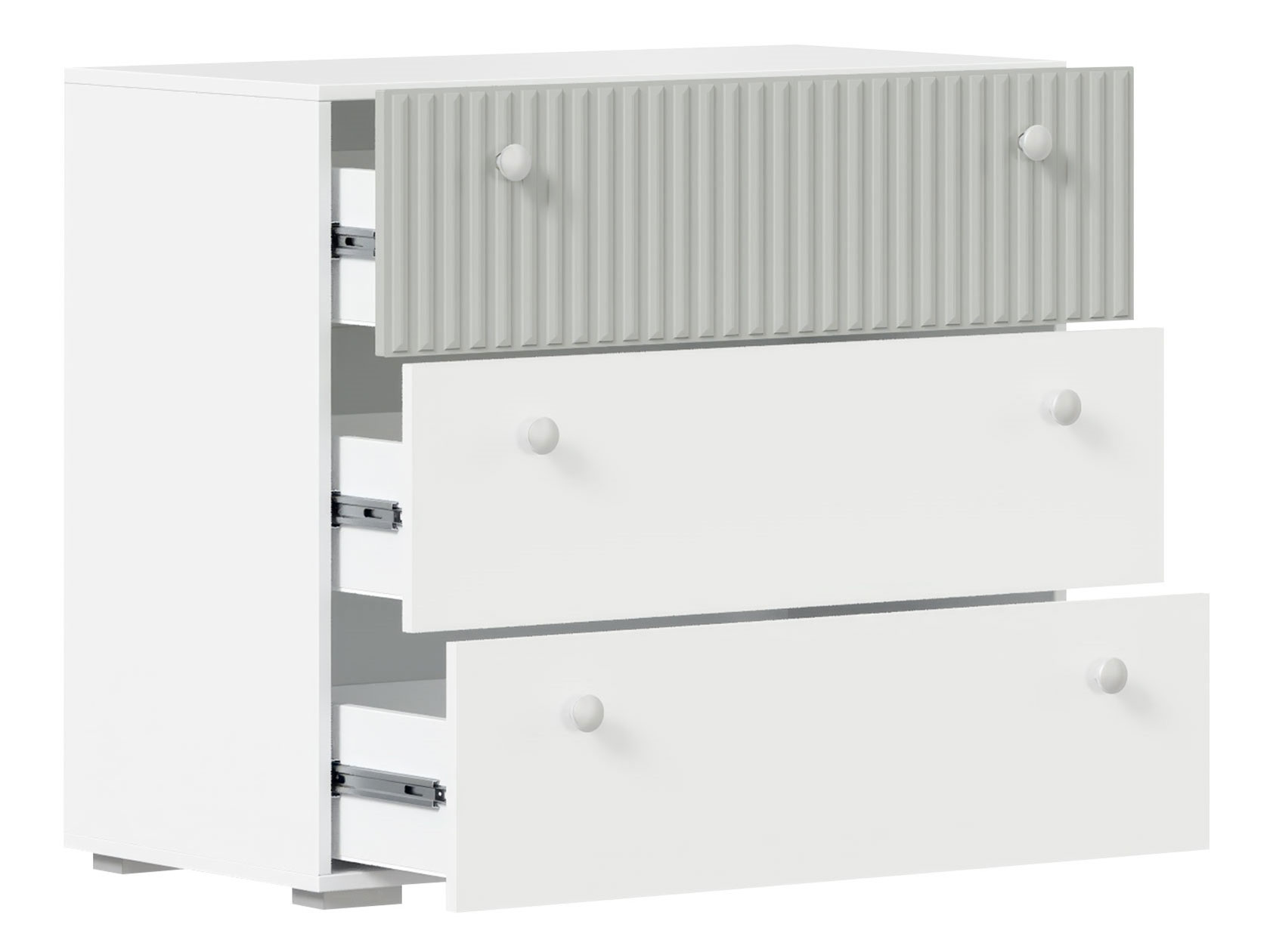 Модель придется по душе любой девочке. Внутри можно хранить игрушки, белье, одежду или учебные принадлежности. Нежный оттенок декора на фасаде верхнего ящика придает комоду особое очарование.